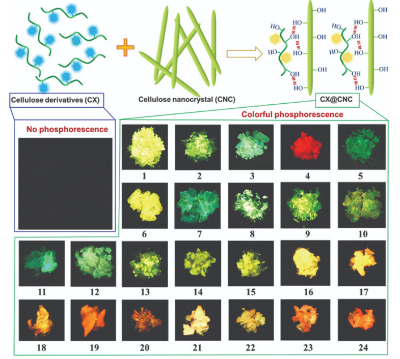 15. Xin Zhang, Chunchun Yin, Jingxuan You, Ruiqiao Li, Jinming Zhang*, Yaohui Cheng, Yirong Wang, Jun Zhang.Cellulose-Based Ultralong Room-Temperature Phosphorescence Nanomaterials with Tunable Color and High Quantum Yield via Nano-Surface Confining Effect[J]. Research、6、1-9. (https://doi.org/10.34133/research.0029)