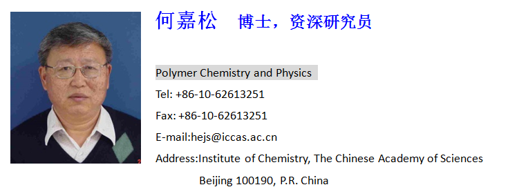[85] Jiasong He*, Hongzhi Zhang, The relation between spinnability of thermotropic liquid-crystalline polymers and their submicrometre reinforcing function in polymer blends, Polymer, 37 (6), 969 (1996) [86] Wensheng Bu, Jiasong He*, The effect of mixing time on the morphology of immiscible polymer blends, Journal of Applied Polymer Science, 62 (9), 1445 (1996)